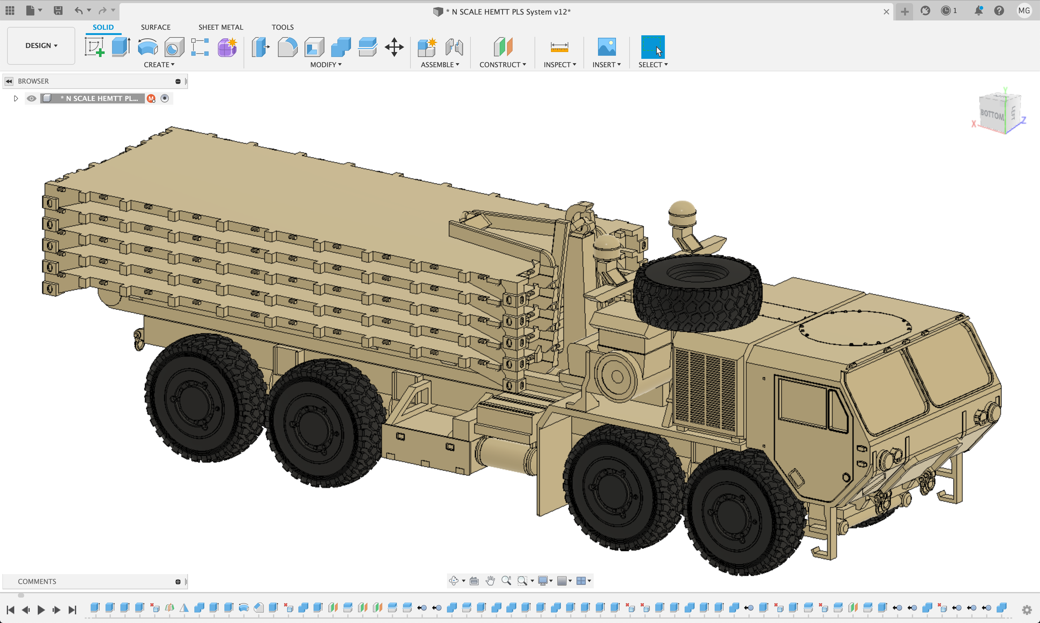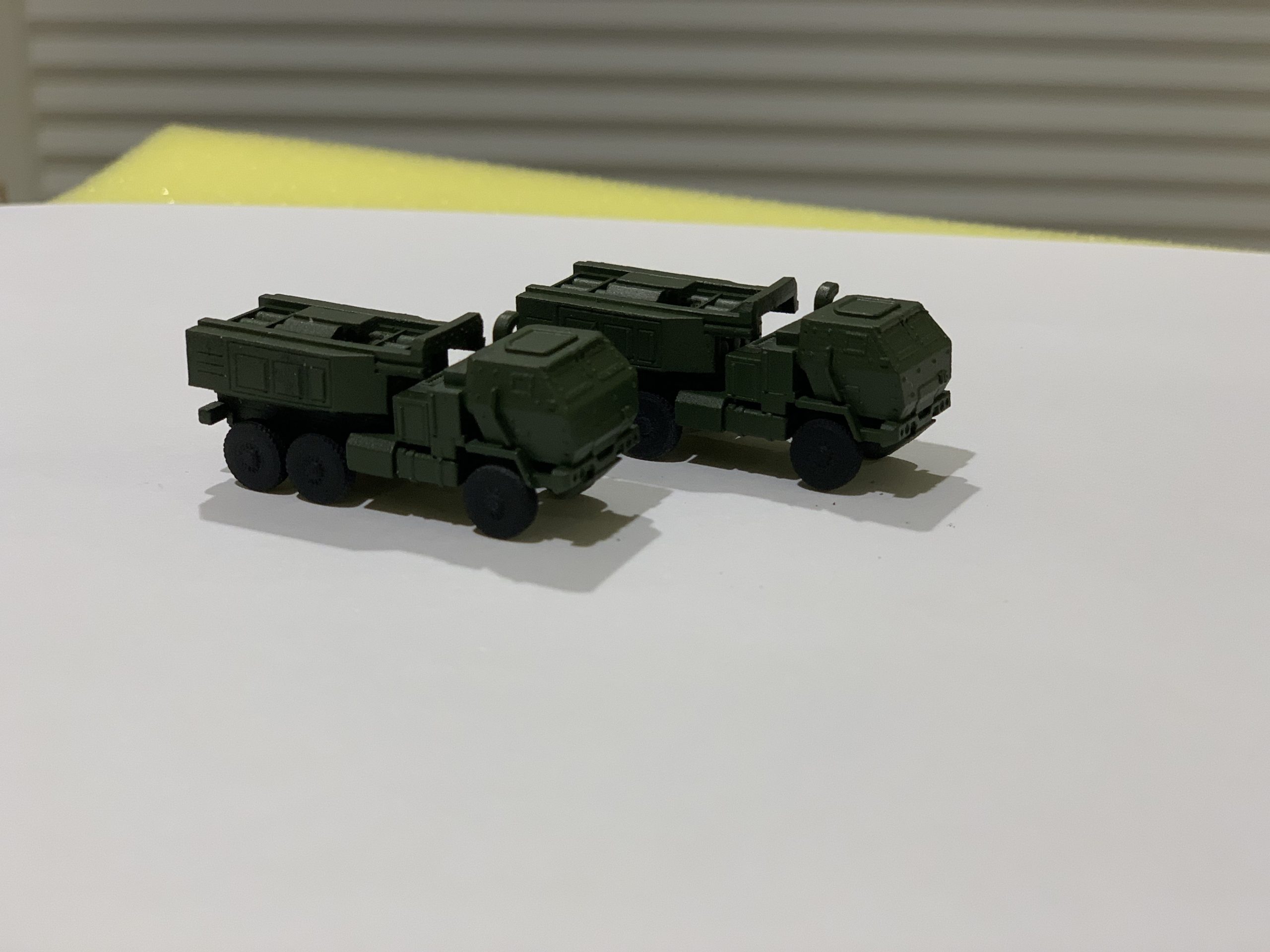 Expanding on the diversity of vehicles for my N-scale model railroad, I experimented with designing and manufacturing these military vehicles using a resin printer.