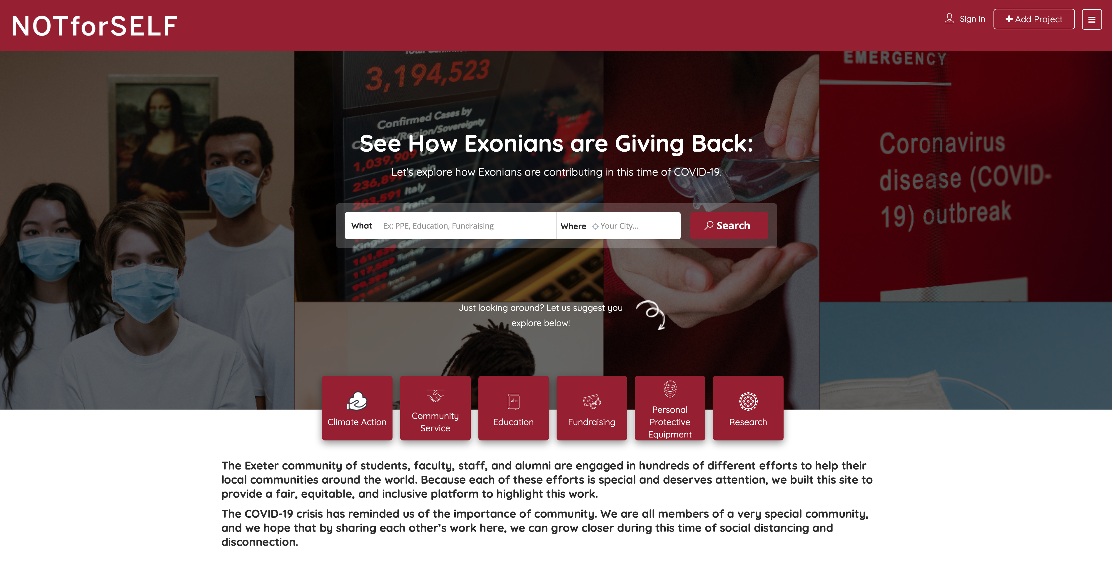 The pandemic led to tremendous isolation amongst all. I founded this site to enable Exonians around the world to share their charitable work with each other when there was widespread isolation and fear during COVID-19.